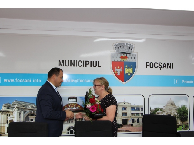 Au fost prezentate principalele proiecte ale municipalității cât și interesul pe care îl avem pentru atragerea de fonduri europene. Încântată de tot ce a văzut, doamna Tanya Collingridge ne-a spus la plecare că Focșaniul îi lasă impresia unui oraș boem, primitor și curat, cu oameni calzi și veseli.